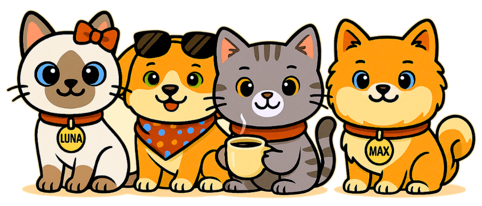 Zwierzaki na Dobry Dzień to paczka zgranych przyjaciół. Spotkasz tutaj Lunę, Zulę, Mruczka i Maxa – cztery zwierzaki, które każdego dnia przynoszą coś prostego, a jednak ważnego: uśmiech, oddech, ulgę, czułość.